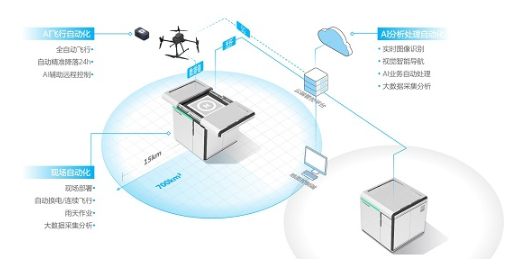 在城市應急突發(fā)事件上,工作人員遠程下達任務指令,距離最近的自動機場自動放飛無人機,快速飛抵事件現(xiàn)場,第一時間了解現(xiàn)場情況,視頻取證后通過喊話系統(tǒng)及時勸阻糾正。