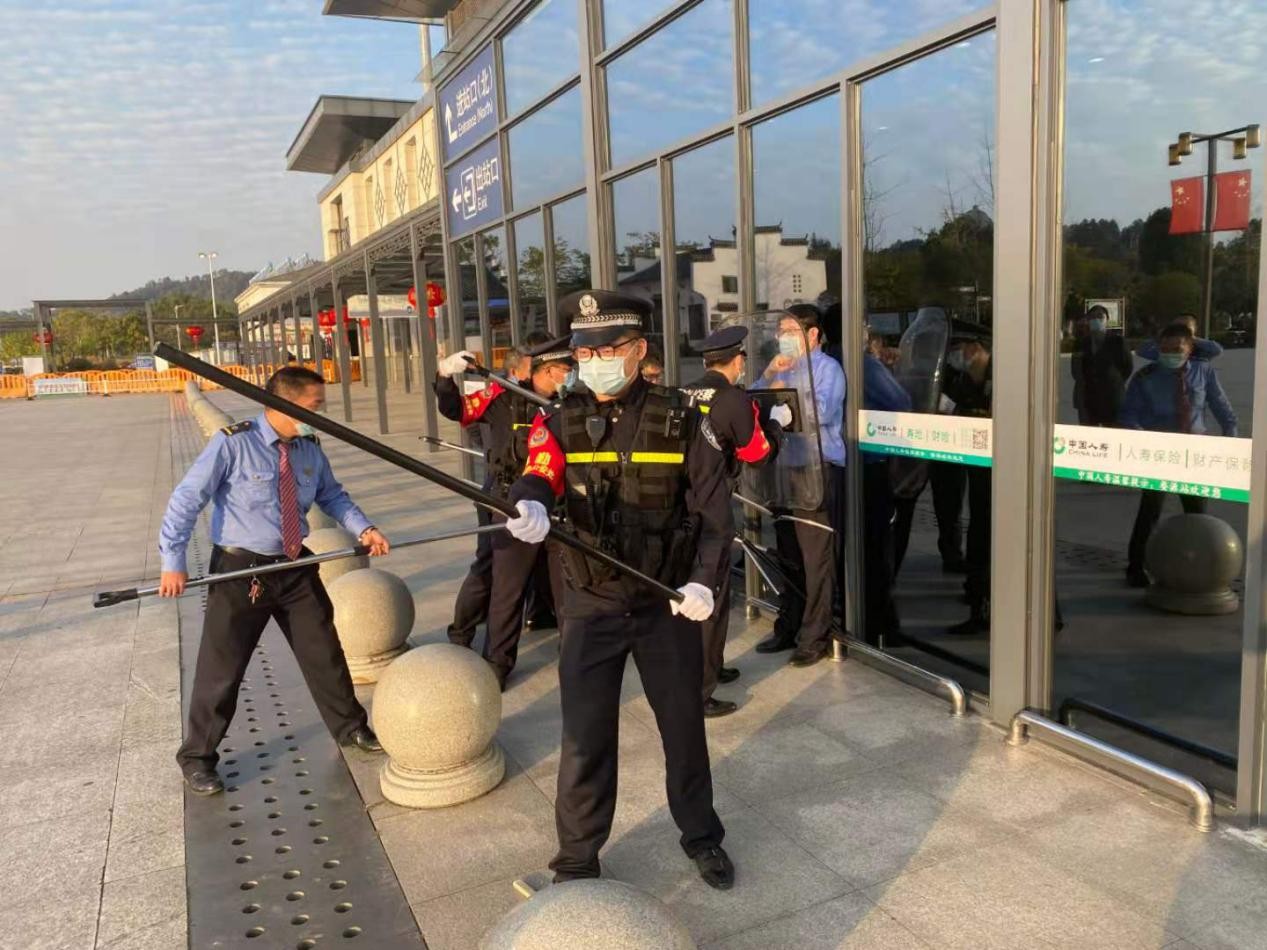 為確保火車站區域絕對安全,進一步提升民警和鐵路職工現場處置應急實戰能力。18日上午,婺源車站派出所聯合婺源站、站前管委會等人員在婺源站舉行了模擬警情應急處突演練。