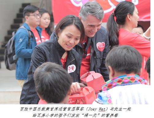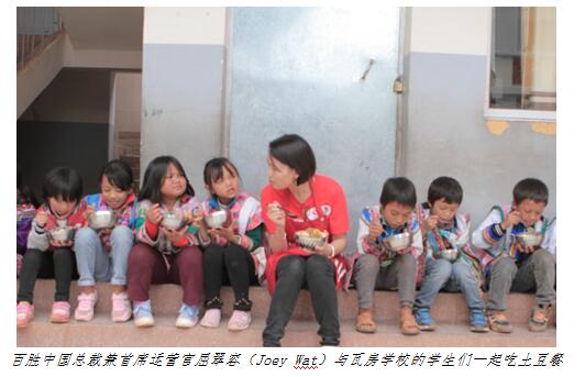 生日會(huì)籌集的善款,加上屈翠容女士以此配比捐助的善款,還有孩子積攢下來(lái)的零用錢,將和百勝中國(guó)“捐一元”項(xiàng)目的籌集的善款一道,變成學(xué)生的營(yíng)養(yǎng)加餐或“愛(ài)心廚房”設(shè)施,提供給像瓦房小學(xué)這樣需要幫助的貧困地區(qū)學(xué)校。