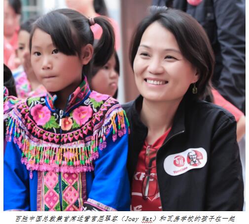 “他們都是百勝中國(guó)牽掛的孩子,這次終于見(jiàn)面了。”百勝中國(guó)總裁兼首席運(yùn)營(yíng)官屈翠容(Joey Wat)在公益項(xiàng)目“捐一元”成功開(kāi)展的第十個(gè)年頭,不僅在肯德基餐廳與里約奧運(yùn)會(huì)中國(guó)首金獲得者張夢(mèng)雪一同捐款、號(hào)召消費(fèi)者參與捐一元,還同她的先生和孩子共赴這場(chǎng)大山里的約定。