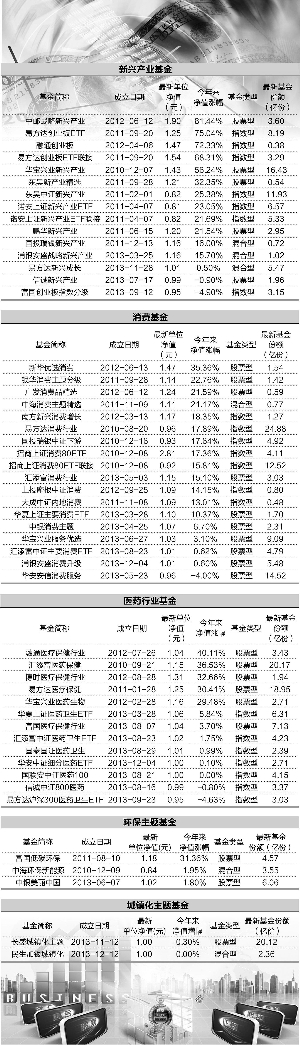 新興產業基金,主要投資以創業板為代表的新興產業股票。自2009年創業板開閘后,這類主題基金發展速度較快。證券時報記者統計,目前以新興產業指數和創業板指數為業績基準的開放式基金由15只,并且今年來表現都不俗。