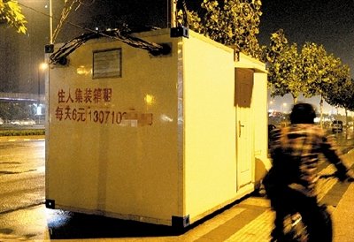 那么這個(gè)箱子到底干啥用的?別急,瞧瞧箱子上的廣告咱就恍然大悟了——“住人集裝箱租,每天6元,13071……”箱子北側(cè)還掛著一臺(tái)空調(diào)機(jī)箱。