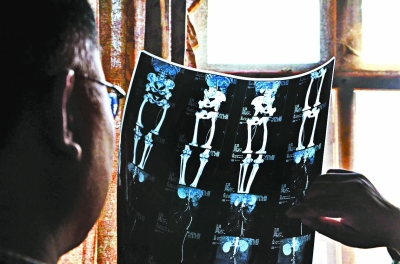 大夫查看鄭鋸腿之前醫院給他拍攝的X光片
