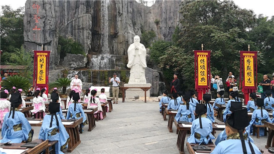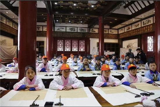 近兩年,翰園碑林不斷豐富研學(xué)課程,并著力培養(yǎng)課程研發(fā)團(tuán)隊(duì),同時(shí)積極與外界合作,拓展市場(chǎng)。現(xiàn)已開展的研學(xué)課程主要有開筆禮、拓片體驗(yàn)、華文菁英會(huì)、書法大講堂、金磚練字、書海拾貝、趣拼六藝、獨(dú)步宋詞、活字印刷、曲水流觴、碑刻體驗(yàn)、國(guó)學(xué)禮儀等其中,古裝體驗(yàn)類項(xiàng)目備受學(xué)生喜愛,參與的老師們更是對(duì)書法大講堂和書海拾貝贊不絕口。現(xiàn)景區(qū)專業(yè)課程研發(fā)團(tuán)隊(duì)8人,其中有專業(yè)的書法老師、國(guó)學(xué)研究人員等,并與多家研學(xué)機(jī)構(gòu)或旅行社合作。