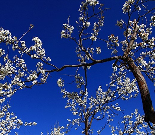 靜靜的看著這些美景,總算是知道,在大自然面前,所有贊美之詞都顯得很渺小,關于金川梨花,我還是引用一位網友寫的:這里是白云出發的地方,是星星和月亮的家園,每一股清泓,都涌動著淵源流長的故事,每一聲滴翠,都滋潤著萬物生長的盎然。扎西德勒、納吉納魯的祝福,洋溢著吉祥如意的虔誠禱念;遠去的石頭記憶,扶搖飄散出女媧補天、精衛填海、白石孕猴的裊裊馨香;昆侖神話、格薩爾王史詩和西戎牧羊的故事,相伴綿遠悠長的草地牧歌,咂酒一樣濃郁的花兒納吉,沿著萬山顛峰,一路起伏跌宕,潑灑著青稞和酥油的芳香,和白云一同布施。