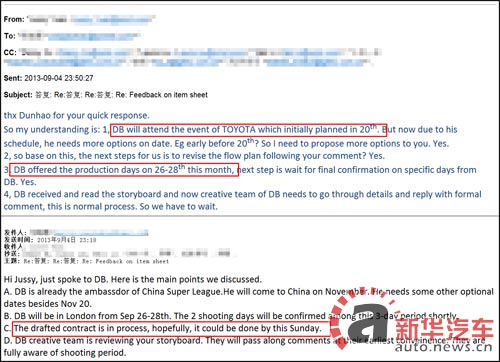 而據(jù)今日新華汽車收到的相關(guān)人士提供的內(nèi)部郵件,貝克漢姆代言一事并非空穴來風(fēng)。詳情見郵件截圖(文中DB指代大衛(wèi)·貝克漢姆):