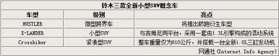 央廣網河南分網消息 據網通社報道:隨著SUV市場逐漸向小型化發展,一直專注于小型車領域的鈴木品牌僅有吉姆尼一款定位在A0級越野SUV市場的車型,而鈴木官方宣布將在11月舉辦的東京車展首發亮相三款定位在小型SUV市場的概念車。網通社查閱相關資料后發現,三款新車型中,名為X-Lander的概念車將采用一套由1.3L引擎所組成的混動系統,并與吉姆尼同平臺打造,競爭對手則瞄向了別克昂科拉;另外Crosshiker則將搭載一臺全新1.0L三缸發動機。