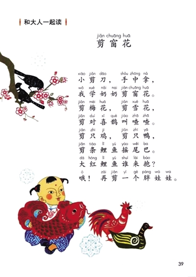 值得一提的是,“部編本”新教材增加了“和大人一起讀”欄目?傊骶帨厝迕艚淌谠f,“和大人一起讀”是新教材的亮點之一。大人指父母、老師或其他家庭成員與親友。一年級剛上學的學生自己還不會讀,所以讓大人和他們一起讀。
