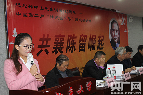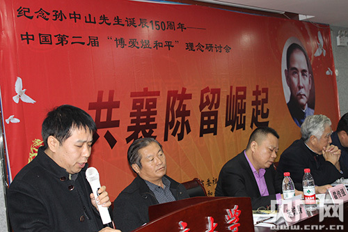 央廣網河南分網消息 11月12日是一代偉人孫中山先生誕辰150周年紀念日。在鄭東新區河南商會大廈17樓會議室,紀念孫中山誕辰150周年——中國第二屆“博愛煜和平”理念研討會“共襄陳留崛起”如期舉辦,圓滿成功。