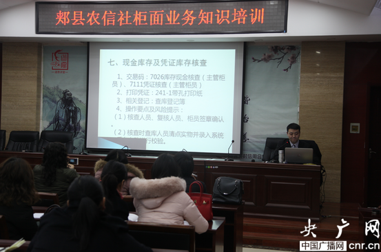 央廣網(wǎng)河南分網(wǎng)消息 為統(tǒng)一規(guī)范柜面業(yè)務(wù)標(biāo)準(zhǔn),提高柜面人員業(yè)務(wù)素質(zhì)及業(yè)務(wù)質(zhì)量,提升服務(wù)總體形象,2016年12月19日,郟縣聯(lián)社運(yùn)營(yíng)管理部開(kāi)展了《柜面業(yè)務(wù)標(biāo)準(zhǔn)規(guī)范業(yè)務(wù)知識(shí)培訓(xùn)》活動(dòng)。本次培訓(xùn)分為3批,每批2天,共計(jì)6天。各信用社內(nèi)勤負(fù)責(zé)人、主辦會(huì)計(jì)、網(wǎng)點(diǎn)負(fù)責(zé)人、全體柜員共計(jì)322人參加培訓(xùn)學(xué)習(xí)。