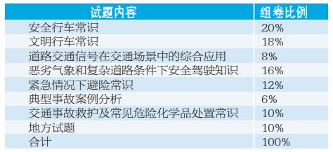 科目一涉及安全文明駕駛常識內容全部調整至科目三安全文明駕駛常識考試項目中;提高道路交通安全法律法規、安全文明駕駛知識考題比例,將單列文明行車常識、典型事故案例等內容;科目一、科目三安全文明駕駛常識考試增加情景類試題,通過文字或圖片、視頻等模擬實際道路交通場景,考核考生對實際道路交通情況認知、判斷和處置能力。