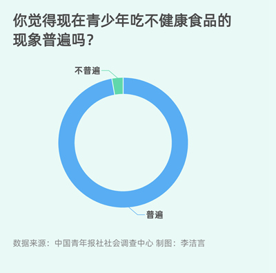 調查顯示,97.2%的受訪者感覺現在青少年吃不健康食品的現象普遍。