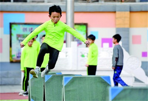 河北石家莊市橋西區(qū)裕華西路小學內(nèi),參加課后托管的學生在進行體育訓練。新華社發(fā)