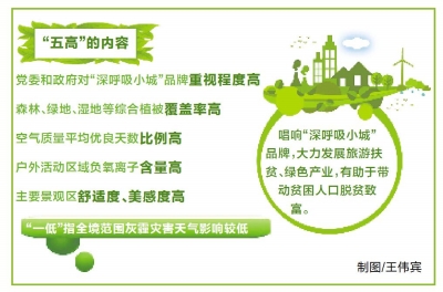 中國氣候變化專家委員會主任劉燕華在接受采訪時指出,隨著人們健康觀念的提升和旅游業(yè)的發(fā)展,“深呼吸小城”品牌有助于發(fā)揮綠色品牌效應(yīng),助推“綠水青山”轉(zhuǎn)化為“金山銀山”。他說,比如河南入選“全國百佳深呼吸小城”名單的7個縣市,除林州市外,其他6個縣都是國家級貧困縣。這些縣唱響“深呼吸小城”品牌,大力發(fā)展旅游扶貧、綠色產(chǎn)業(yè),有助于帶動貧困人口脫貧致富。