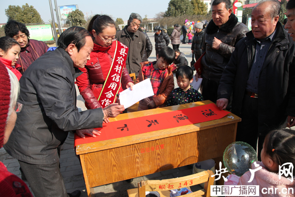 聯(lián)社正式組建志愿者服務隊,按照便于組織及特長的原則,由聯(lián)社統(tǒng)一分配地域崗位,合理劃分志愿者服務隊小分隊,在縣城繁華路段設郟縣農(nóng)信社業(yè)務知識流動宣傳臺,現(xiàn)場答疑解問,講解金融業(yè)務知識,并聘請4名書法名家現(xiàn)場免費為群眾寫春聯(lián)。