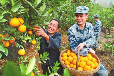 央廣網河南分網消息 據河南日報報道:11月11日,濟空駐宛某部的官兵在幫助內鄉縣大橋鄉楊溝村缺少勞力的果農采摘桔子。該部隊常年幫助駐地1000多戶果農解決抗旱、修路、噴藥、采摘、銷售等實際問題,使桔子產業迅速發展壯大,成為當地群眾致富的支柱產業。(張中立 趙慶峰 攝)