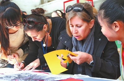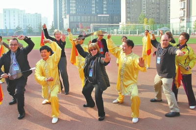96中的師生們為美國客人奉上了古箏、葫蘆絲、豫劇、太極拳、毽球、書法、剪紙、茶藝等極具中國韻味和河南特色的精彩表演。許多美國朋友還參與其中,學古箏、秀太極、踢毽球,甚至用起了毛筆。在觀摩了96中的課堂教學情況后,來自紐約州的東西方國際學校校長本·謝爾曼說:“這所學校環境優美,孩子們的英語都很棒。”