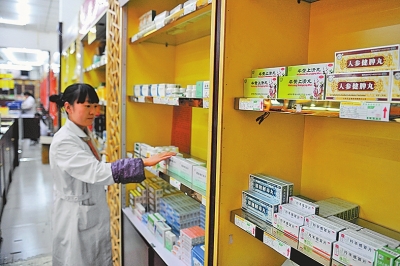 央廣網河南分網消息 據河南日報報道:4月11日,太原市平陽路北京同仁堂藥店的一名工作人員在整理“經典老藥平價專柜”的藥品。近日,在太原市小店區的31家藥店,抗感冒類、維生素類等60種“老藥”出現在藥店新設的“經典老藥平價專柜”,受到消費者的歡迎。 新華社發