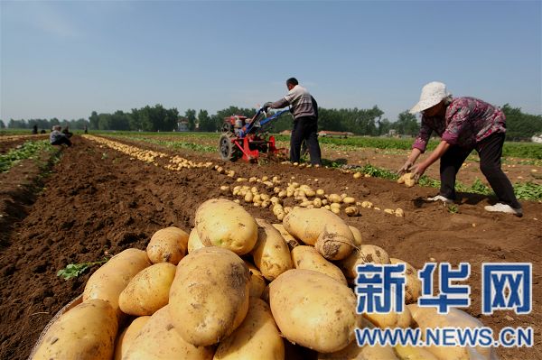 央廣網(wǎng)河南分網(wǎng)消息 據(jù)新華網(wǎng)河南頻道報(bào)道:5月6日,商水縣城關(guān)鄉(xiāng)瓦房店村“農(nóng)超對(duì)接”蔬菜基地的200余畝土豆開始采收,80萬斤土豆將按市場(chǎng)需求逐批收獲上市。該基地采用三層薄膜覆蓋、有機(jī)蔬菜管理模式栽培種植,上市早、口感好,每畝收入可達(dá)7000余元,成為拉動(dòng)當(dāng)?shù)剞r(nóng)民致富的“金蛋蛋”。