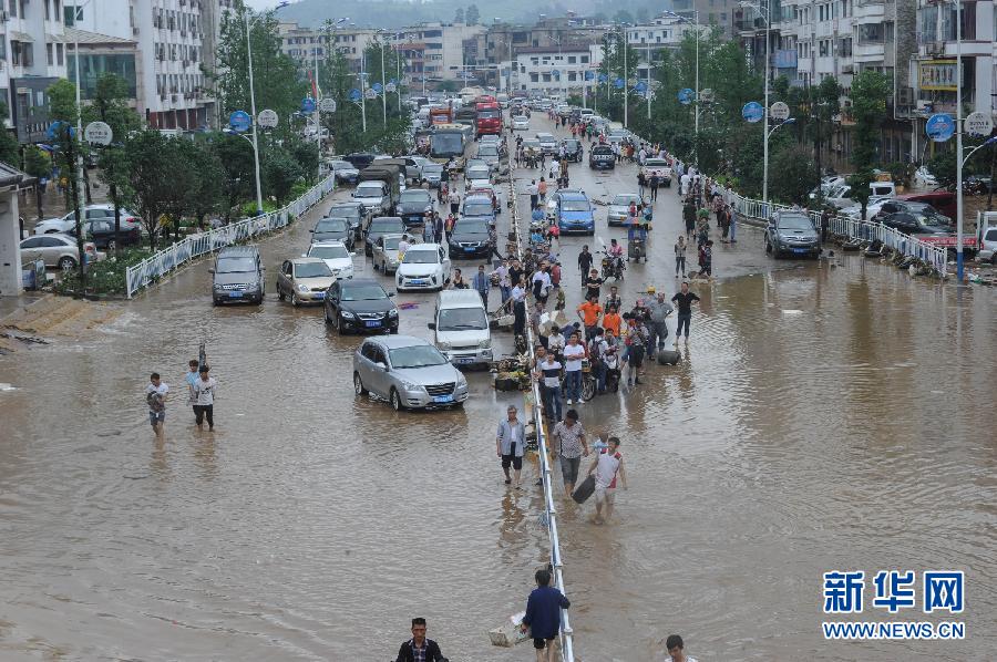 央廣網河南分網消息 據新華網報道:6月3日,強降雨后,貴州安順平壩縣旁一河道水勢猛漲。貴州省人民政府防汛抗旱指揮部稱,受強降雨影響,截至當日10時,貴州桐梓縣、習水縣、平壩縣等7縣37個鄉鎮15.6萬人受災,因災死亡1人,失蹤2人,房屋倒塌393間,農作物7.2萬畝,災害直接經濟損失1.2億元。(新華社記者 歐東衢 攝)