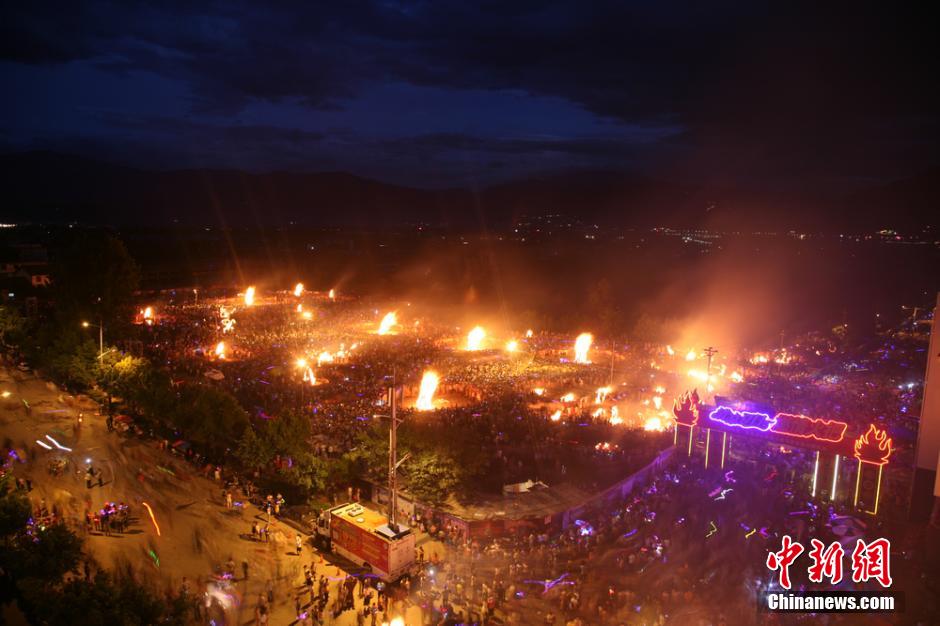 央廣網(wǎng)河南分網(wǎng)消息 據(jù)中新網(wǎng)報(bào)道:7月20日,一年一度的彝族傳統(tǒng)民族節(jié)日——四川涼山彝族火把節(jié)在州府西昌火熱上演,吸引來(lái)自云南、貴州、成都、重慶、攀枝花等地?cái)?shù)十萬(wàn)游客前來(lái)“打火把”狂歡,來(lái)自天南地北的游客圍著熊熊燃燒的篝火手拉手縱情歌舞,盡情釋放旅游途中的歡快。今年西昌舉辦的涼山彝族火把節(jié)以原生態(tài)為主題,分別在西昌城郊的高枧、小廟、洛古波等處設(shè)有“打火把”狂歡場(chǎng)地。火把狂歡夜是當(dāng)?shù)匾妥寤鸢压?jié)的重頭戲,據(jù)官方統(tǒng)計(jì),當(dāng)晚的火把狂歡夜吸引了40多萬(wàn)人參加。四川涼山是中國(guó)最大的彝族聚居區(qū),每年農(nóng)歷6月24日左右是當(dāng)?shù)匾妥迦罕娺^(guò)火把節(jié)的日子,一般持續(xù)3至5天,期間將開(kāi)展選美、摔跤、爬桿、斗牛、賽馬、打火把等民族活動(dòng)。涼山彝族火把節(jié)近年來(lái)也被稱為“東方狂歡節(jié)”。(高寒 攝)
