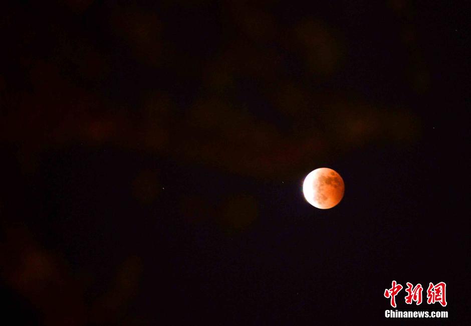 10月8日晚,“紅月亮”亮相福州上空。本次月全食于北京時間10月8日17時14分開始“初虧”,20時35分“復圓”,全食時間長達近1小時。王東明 攝