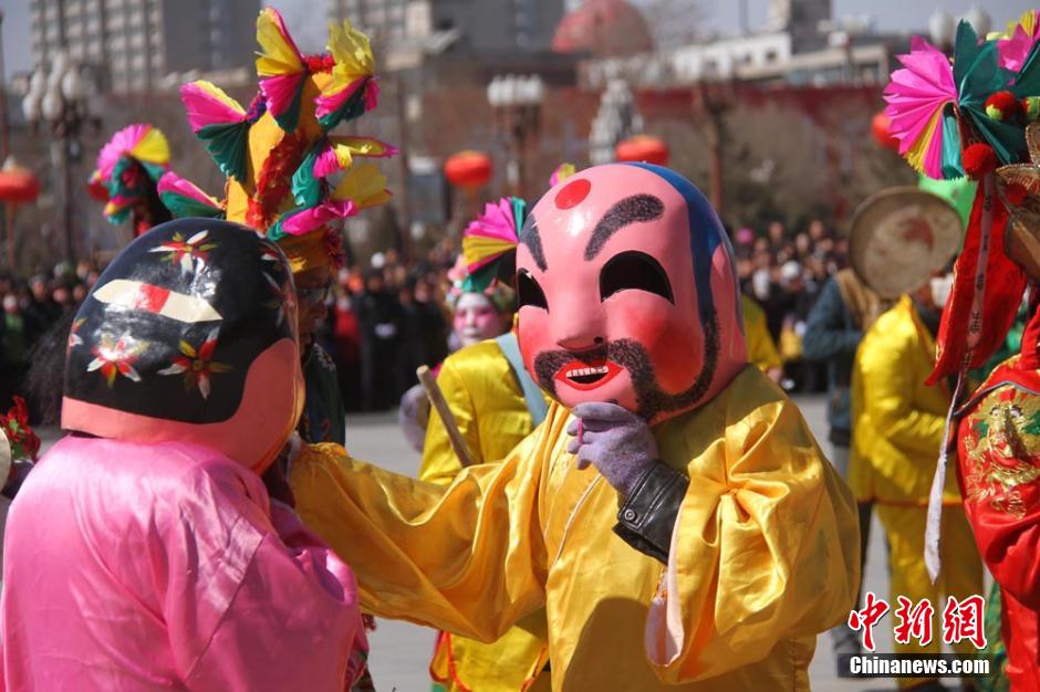 央廣網河南分網消息 3月3日,中國農歷正月十三,張掖甘州區安陽鄉社火隊在表演傳統社火。當日,來自甘州區7個鄉鎮的社火隊在張掖城區中心廣場進行表演,近千名隊員上演扭秧歌、舞龍舞獅、劃旱船等民間社火節目,表演內容多取材于神話、歷史演義或民間傳說故事,有著鮮明的地域文化特色,將羊年春節慶祝活動推向高潮,迎接即將到來的正月十五元宵節。陳禮 攝