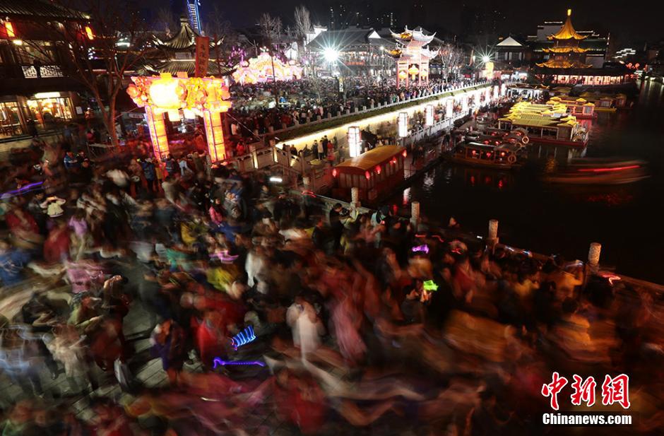 央廣網河南分網消息 3月5日晚,數十萬市民和游客前往南京夫子廟景區內欣賞秦淮燈會,瞬間開啟“人人人人人”模式。據當地警方發布的信息顯示,共有52萬游客前往夫子廟及老門東景區逛燈會、鬧元宵。秦淮燈會又稱“金陵燈會”,是流傳于南京地區的特色民俗文化活動,主要在每年的春節至元宵節期間舉行。 泱波 攝