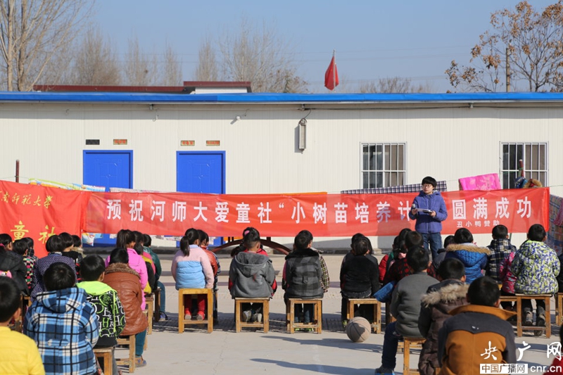 當天上午,河師大愛童社和郝光屯小學形成正式對接,在該學校啟動了“小樹苗”培養計劃啟動儀式。今后,河師大將長期支持小學成立小學生興趣社團并組織開展社團活動,為留守兒童綜合素質提高,身心健康發展創造條件。