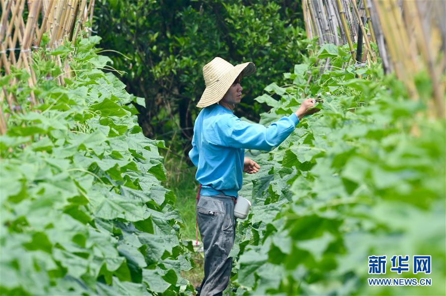 5月5日,福州市閩侯縣南通鎮瓜山村村民在修整瓜秧。當日是二十四節氣中的立夏,福建省福州市閩侯縣南通鎮蔬菜基地一派繁忙景象,當地菜農利用晴好天氣搶抓農時,精耕細作,爭取有個好收成。新華社記者 姜克紅 攝