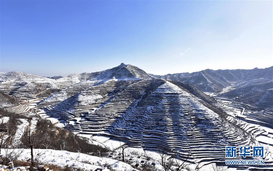 這是12月27日拍攝的涉縣王金莊梯田雪景。連日來,河北涉縣普降小到中雪,雪后的涉縣梯田美景如畫。 新華社記者王曉攝