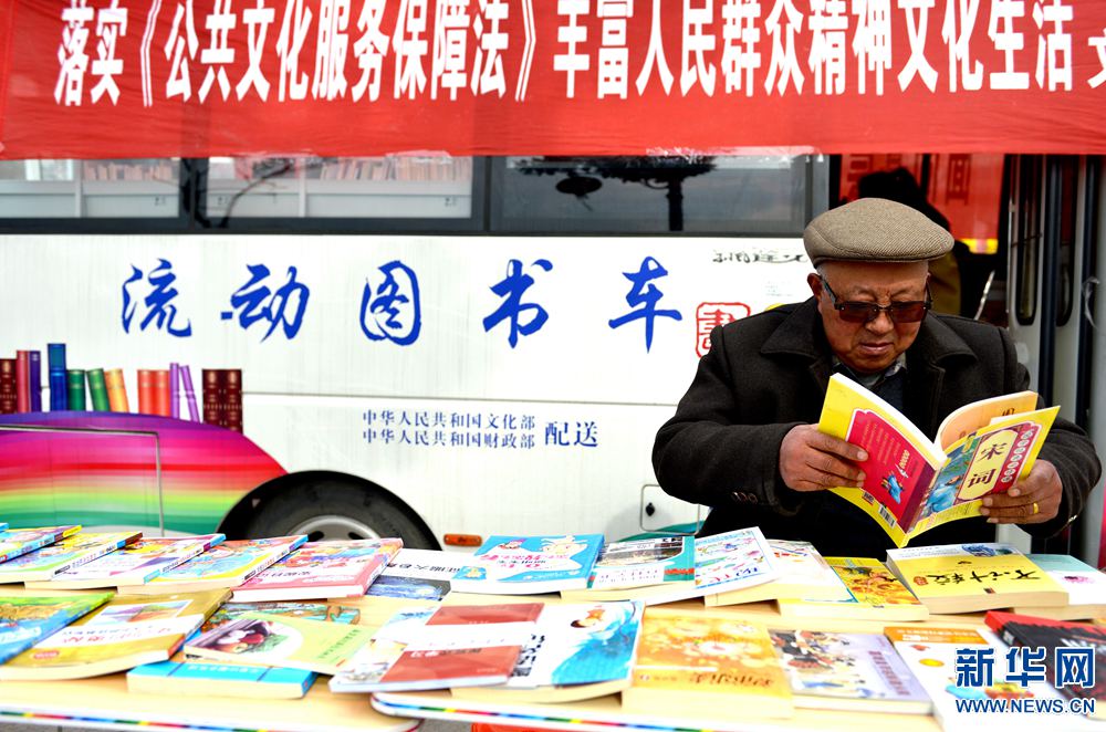 3月1日,市民在河南省夏邑縣長(zhǎng)壽廣場(chǎng)流動(dòng)圖書(shū)車(chē)前免費(fèi)閱讀圖書(shū)。河南省商丘市夏邑縣圖書(shū)館開(kāi)展“圖書(shū)到廣場(chǎng)、送社區(qū)、入鄉(xiāng)村”活動(dòng),利用流動(dòng)圖書(shū)車(chē)將政治、經(jīng)濟(jì)、科技、文化、教育、生活等各類圖書(shū)送到廣場(chǎng)、社區(qū)、鄉(xiāng)村,供城鄉(xiāng)居民免費(fèi)閱讀。新華網(wǎng)發(fā)(苗育才 攝)