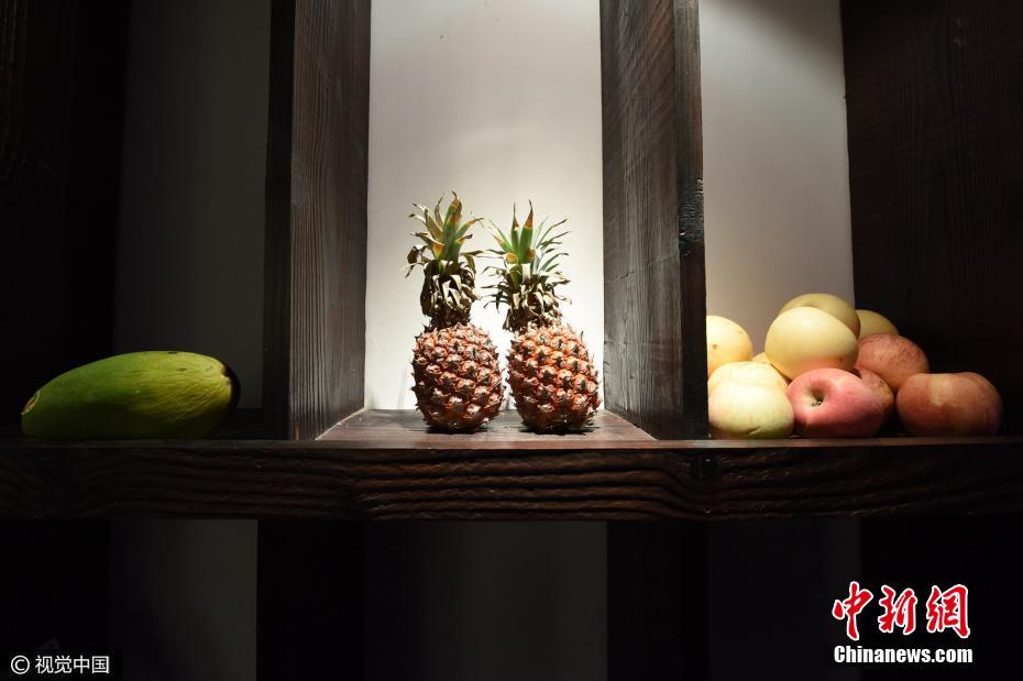 近日,杭州開出了一家奇葩書店“兩本書店”,書店占地30平方米,一面是一排放有書和蔬菜水果的書架,另一面是為讀者提供咖啡等飲料的吧臺。據了解,“兩本書店”是一家限時限量售書的書店。而且永遠只賣兩本書,每兩周更新一次書目品種。書目由愛讀書的人進行推薦。龍巍 攝 圖片來源:視覺中國