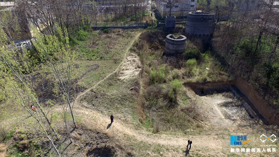 2017年3月26日,在河南許昌航拍的國家級文物保護單位“許昌人”靈井遺址。 -