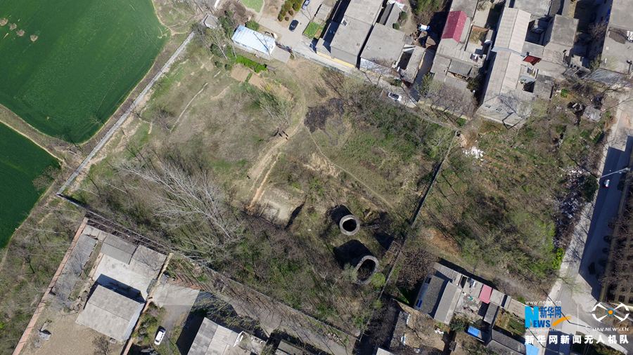 2017年3月26日,在河南許昌航拍的國家級文物保護單位“許昌人”靈井遺址。