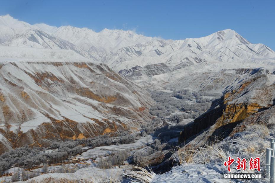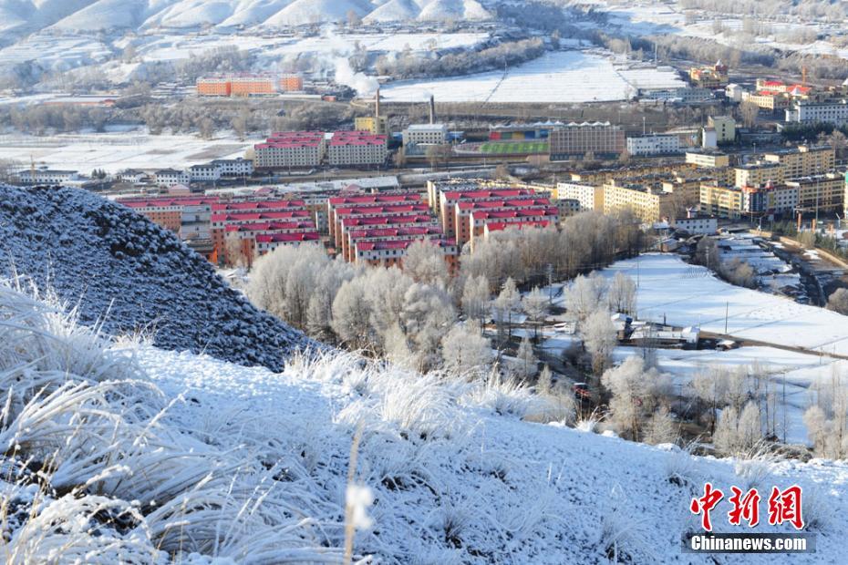 4月16日,地處祁連山腳下的甘肅肅南裕固族自治縣現唯美霧凇景觀。晶瑩的霜花、冰凝附著在樹枝上,遠望銀裝素裹,潔白一片,宛如仙境。由于連續降雪,當地草原積雪最厚達10厘米,并出現大霧,驟降的氣溫使得消融的河水重新結冰,蒼茫大地一片銀裝素裹。武雪峰 攝 -