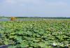 河南淮陽萬畝龍湖荷花競放,清香四溢,是游人觀荷消暑的好去處。 -