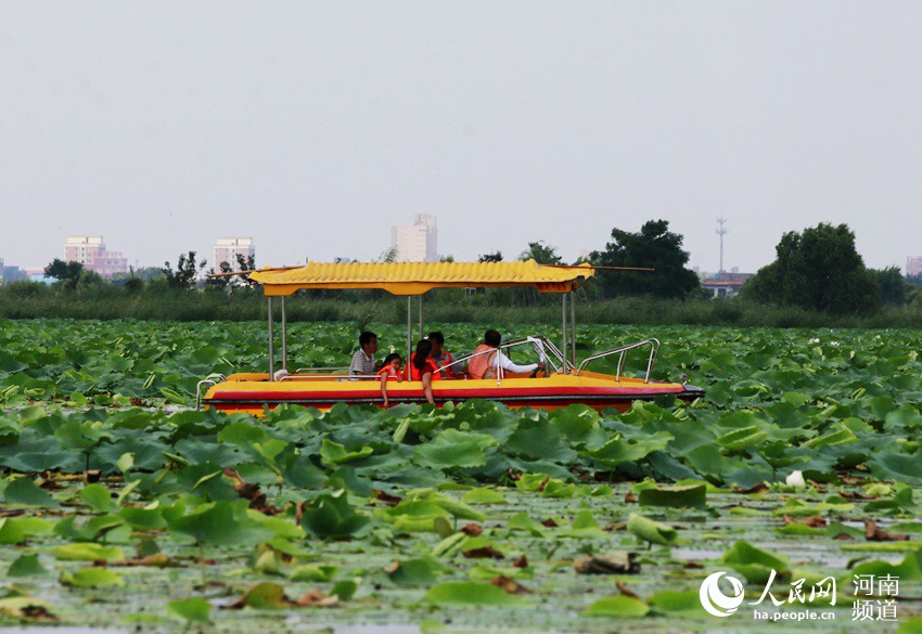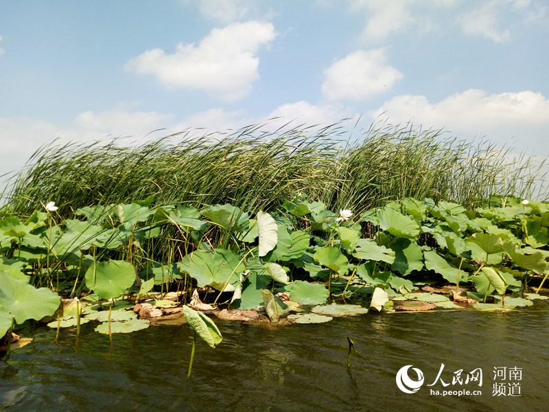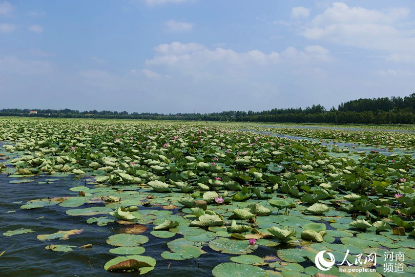 河南淮陽萬畝龍湖荷花競放,清香四溢,是游人觀荷消暑的好去處。