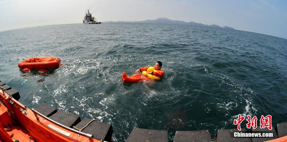 16名中國航天員和2名歐洲航天員,8月21日在山東省煙臺市附近海域圓滿完成了為期17天的海上救生訓練任務。圖為訓練期間,8月17日,中國航天英雄楊利偉參加訓練。 中新社發 朱九通 攝 -