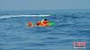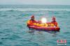 16名中國航天員和2名歐洲航天員,8月21日在山東省煙臺市附近海域圓滿完成了為期17天的海上救生訓練任務。圖為訓練期間,8月8日,受試人員坐在小艇上等待救援。 中新社發 朱九通 攝 -
