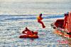 16名中國航天員和2名歐洲航天員,8月21日在山東省煙臺市附近海域圓滿完成了為期17天的海上救生訓練任務。圖為訓練期間,8月15日,歐洲航天員馬蒂亞斯·約瑟夫嘗試從小艇躍入水面。 中新社發 朱九通 攝 -