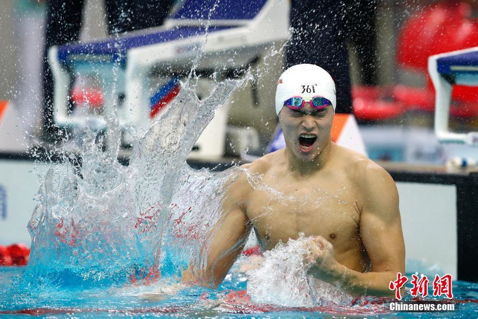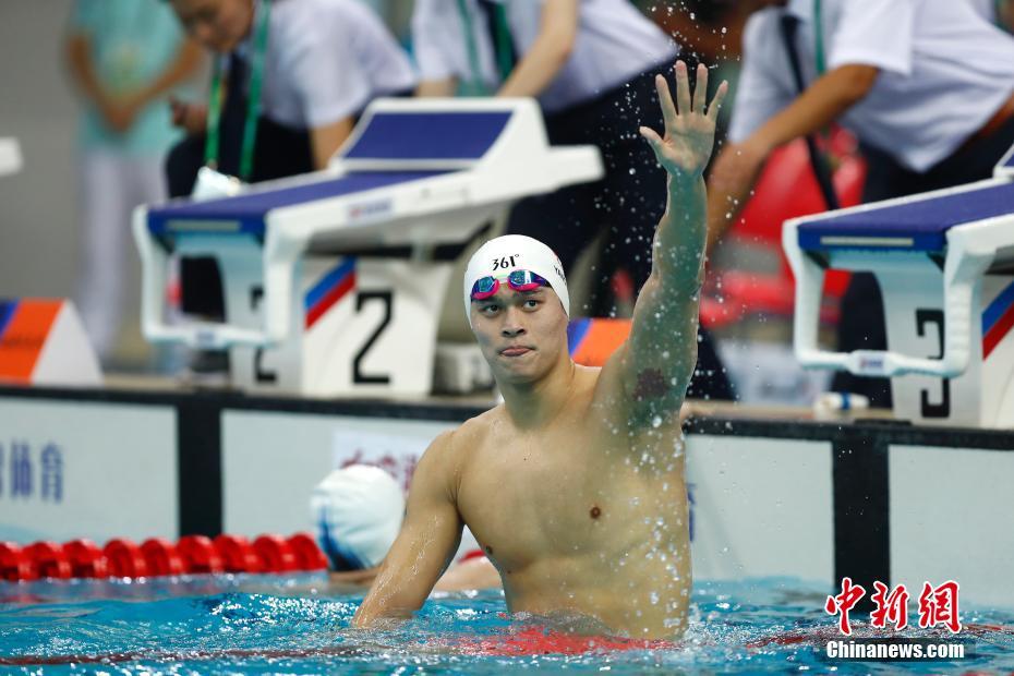 9月7日,天津全運會孫楊摘得男子1500米自由泳及男子4x100米混合泳兩枚金牌,以六金一銀七枚獎牌結(jié)束全運會賽程。 中新社記者 富田 攝 -