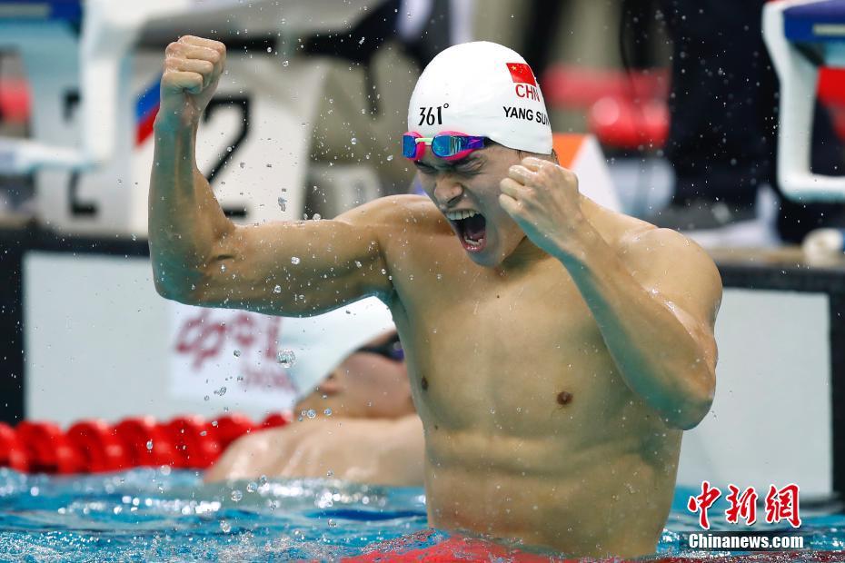 9月7日,天津全運會男子1500米自由泳決賽在天津奧林匹克中心游泳跳水館舉行,來自浙江的孫楊以15分05秒18奪冠。 中新社記者 富田 攝 -