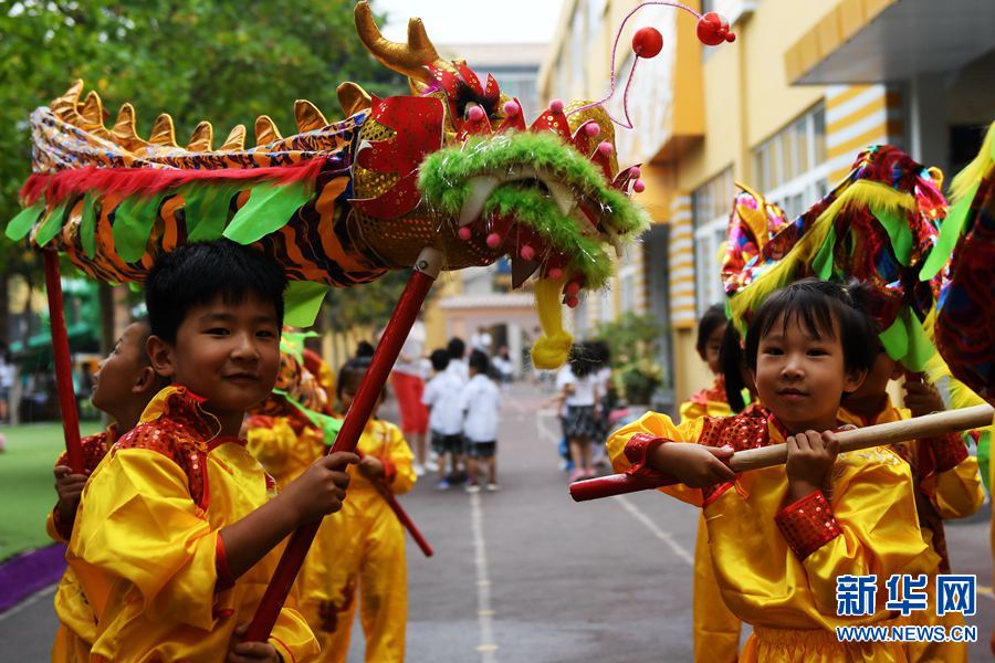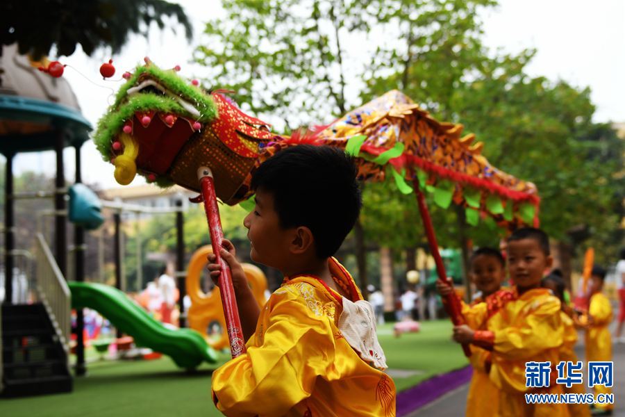 • 7月19日,在南陽市實驗幼兒園,孩子們在老師的帶領(lǐng)下進行舞龍游戲。據(jù)了解,該園通過舞龍、劃龍舟、趕蝸牛犁地等傳統(tǒng)游戲,寓教于樂,讓孩子們釋放天性,傳承文化。新華網(wǎng)發(fā)(陳輝 攝)