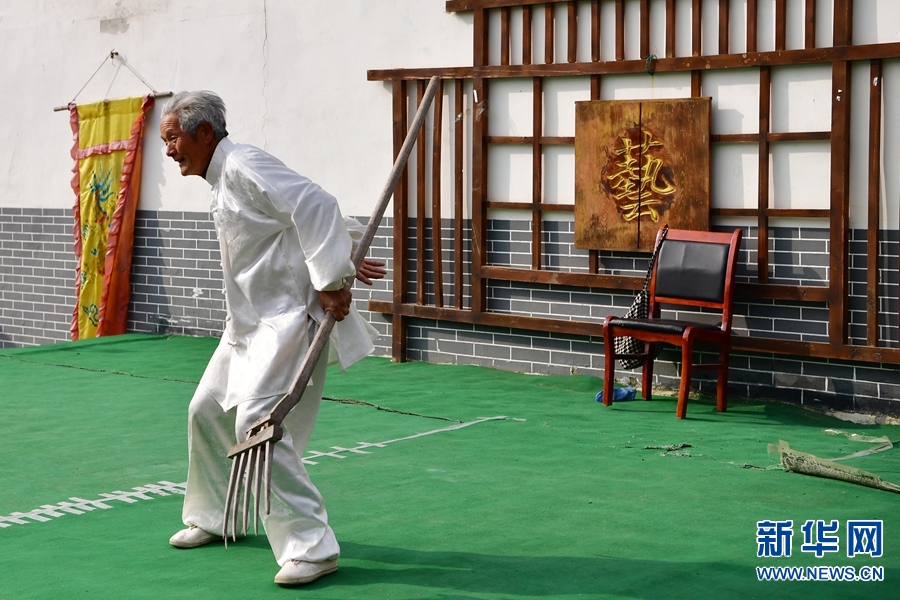 在河南省濮陽(yáng)市華龍區(qū)岳村鄉(xiāng)東北莊村一個(gè)雜技小院,東北莊著名雜技流派“喬家班”的第六代傳人、年近八旬的喬金生用杈把表演雜技(11月21日攝)。 中原地區(qū)是中國(guó)雜技的主要起源地之一,中原雜技首推河南濮陽(yáng),濮陽(yáng)雜技源自東北莊。東北莊同河北吳橋并稱(chēng)為“中國(guó)雜技南北故里”。 如今的東北莊,村里以雜技為主題的文化墻到處都是,雜技小院每天熱鬧非凡,明清小巷依然有不少孩童在練習(xí),專(zhuān)業(yè)雜技學(xué)校迎來(lái)四海學(xué)員……雜技,讓古老的東北莊煥發(fā)生機(jī)和活力,也在改變著這里人民的生活。 新華社記者馮大鵬攝 -