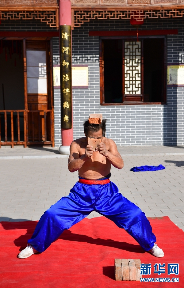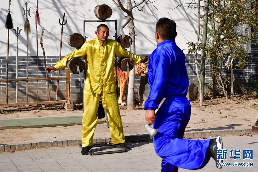 在河南省濮陽(yáng)市華龍區(qū)岳村鄉(xiāng)東北莊村一個(gè)雜技小院,一位藝人表演硬氣功“劈磚”(11月22日攝)。 中原地區(qū)是中國(guó)雜技的主要起源地之一,中原雜技首推河南濮陽(yáng),濮陽(yáng)雜技源自東北莊。東北莊同河北吳橋并稱(chēng)為“中國(guó)雜技南北故里”。 如今的東北莊,村里以雜技為主題的文化墻到處都是,雜技小院每天熱鬧非凡,明清小巷依然有不少孩童在練習(xí),專(zhuān)業(yè)雜技學(xué)校迎來(lái)四海學(xué)員……雜技,讓古老的東北莊煥發(fā)生機(jī)和活力,也在改變著這里人民的生活。 新華社記者馮大鵬攝 -