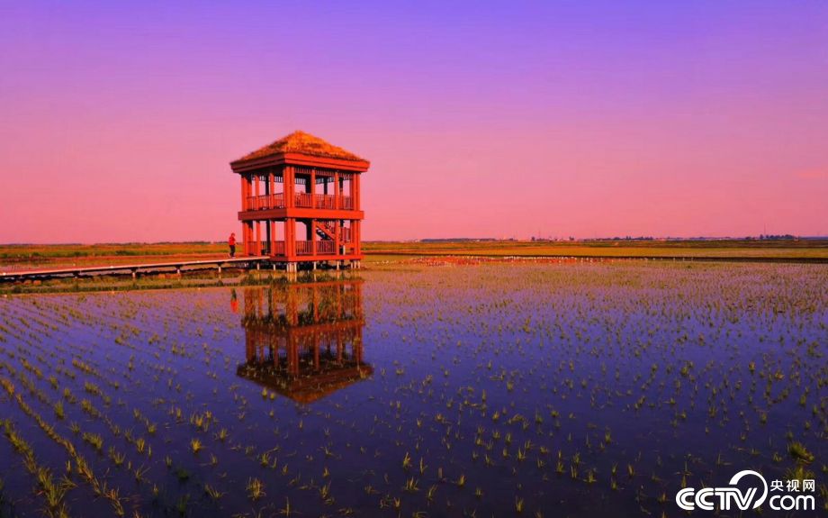 央視網消息(記者 李文學) 萬畝水稻公園是黑龍江省建設的第一個田園綜合體項目,位于“北國糧都”富錦市。登上39米高的觀光塔,6種不同顏色的巨型彩色稻田畫呈現在廣袤的稻田之中,成為當地打造農業觀光旅游的一張新名片。 -