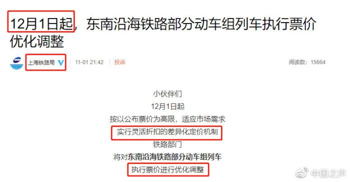自2013年鐵道部被撤銷,鐵路政企分開以來,鐵路部門就在持續探索市場化發展的道路;疖嚻备惆ā按蛘邸痹趦鹊母鞣N“優化調整”,實際上早已不是什么新鮮事——早在2016年,國家發改委就曾下發通知宣布,“從2016年起,放開高鐵動車票價,改由鐵總自行定價”。自那以后,火車票價尤其是高鐵動車組列車的票價,就越來越靈活,出現了“打折浮動”、“一日一價”等更加豐富多樣的定價形式。
