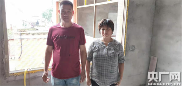 劉建偉和妻子在新建的二層樓上(央廣網發 通訊員陳紅源 供圖)