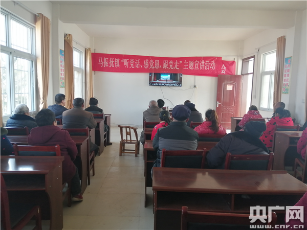 12月23日,在馬振撫鎮前莊、綿羊山等多個村村民們正在津津有味的觀看脫貧攻堅“聽黨話、感黨恩、跟黨走”宣講報告會錄像。據悉,馬振撫鎮以村為單位組織貧困戶和村民集中觀看“聽黨話、感黨恩、跟黨走”全市巡回宣講報告會專題片引導廣大群眾學習先進,弘揚正能量,激發內生動力。